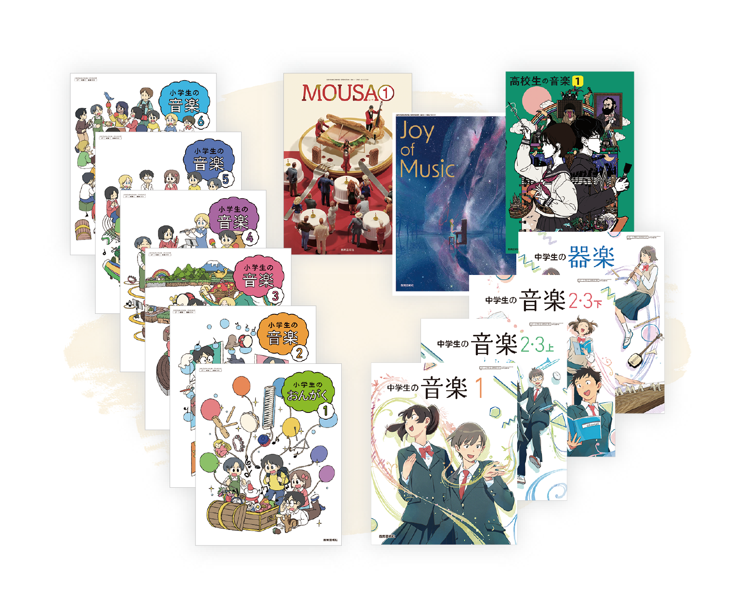 当社設立以来の歴史をもち、時代の変化とともに歩んできた音楽教科書。学校の先生方や教育関係者の声を聞き、音楽のスペシャリストたちとともに日々教材開発を行っています。時代を超えても変わらないものと新しいものとをバランスよく取り入れながら、音楽教育の中心を担っています。