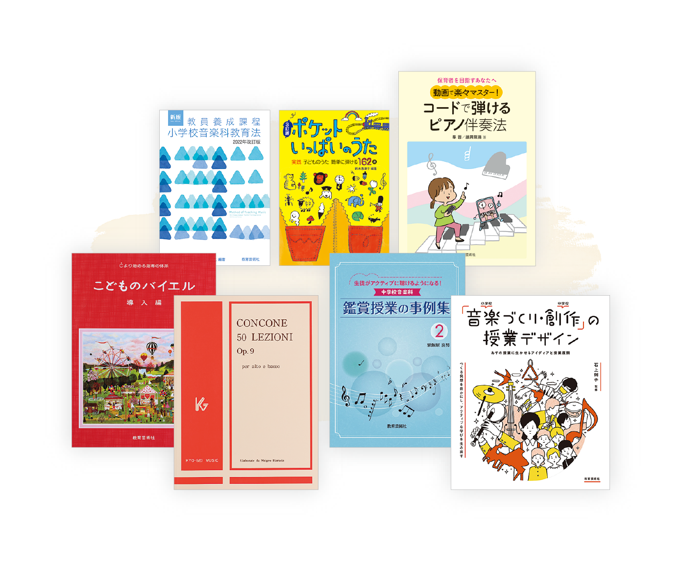 音楽の教育方法や歴史・日本音楽など、さまざまな分野において研究書として活用されている書籍。特に、声楽・ピアノなどの教本や、楽曲解説や原語歌詞の対訳など、楽曲分析の手助けになるようさまざまな工夫が施された楽譜は、専門家を志す学生や音楽を趣味とする人にも愛されています。