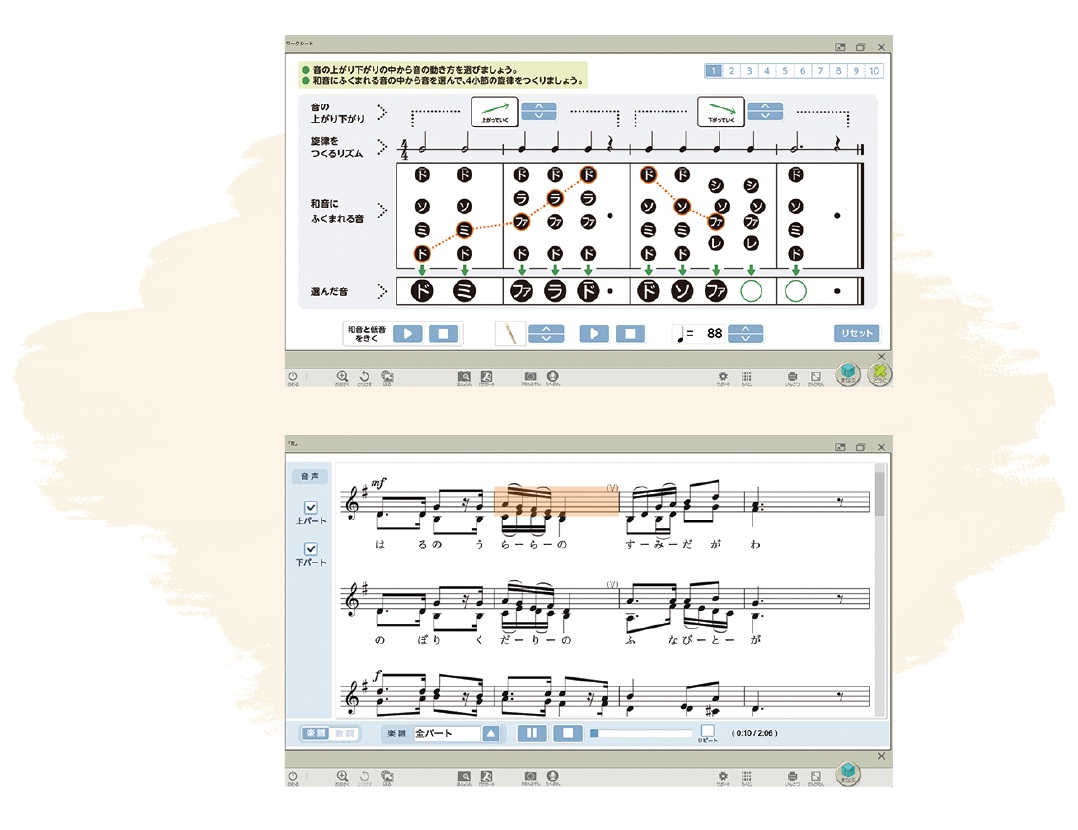 当社発行の音楽教科書にさまざまなコンテンツを加えた「指導者用デジタル教科書(教材)」は、2025年度には全国16,000校以上の小・中学校で使用され、今や音楽の授業に欠かせないアイテムとなっています。
