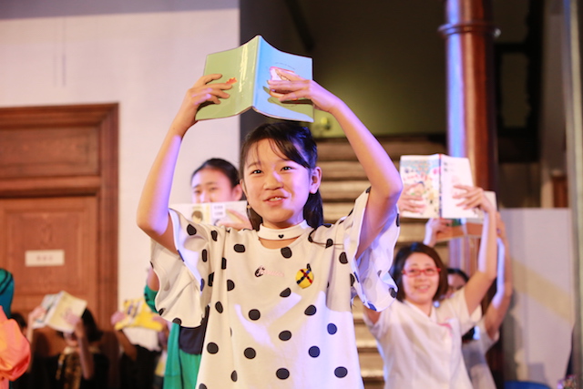 小学生〜高校生を中心としたメンバーが、のびやかな歌と華麗なダンスで熱く演じていました。音楽は作品集『図書館で会いましょう』の曲を中心に、たくさんのオリジナルナンバーが加わった豪華なラインナップ。一緒に口ずさみたくなるようなメロディーがあふれていました。