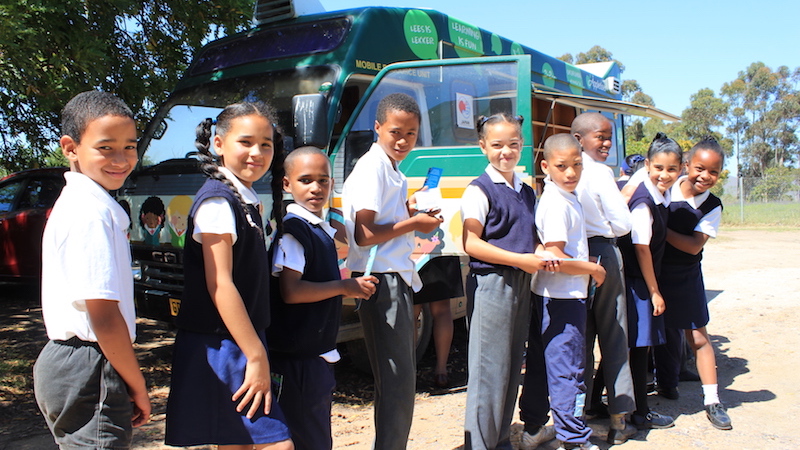 南アフリカに届けられる移動図書館車(大分県佐伯市立佐伯図書館より譲渡)