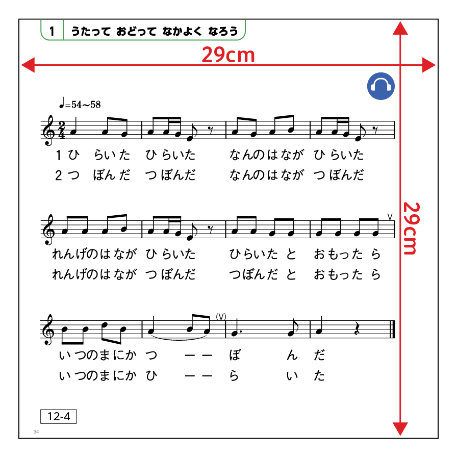 音楽を学習するうえで、たいへん重要な要素である「楽譜」の見やすさや使いやすさを第一に考え、楽譜のまとまりを見渡せるように配慮したレイアウトになっています。