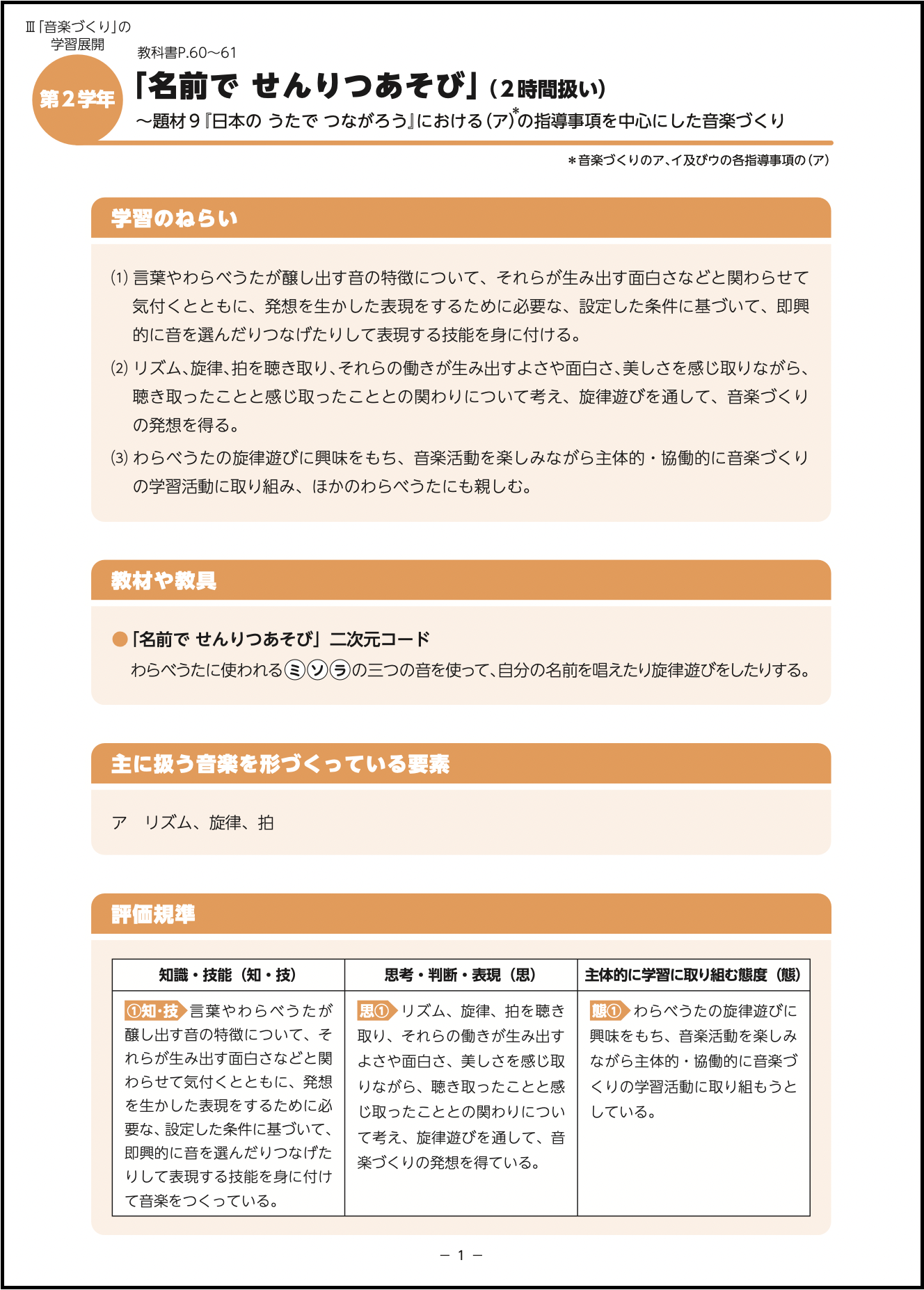 第2学年 名前でせんりつあそび